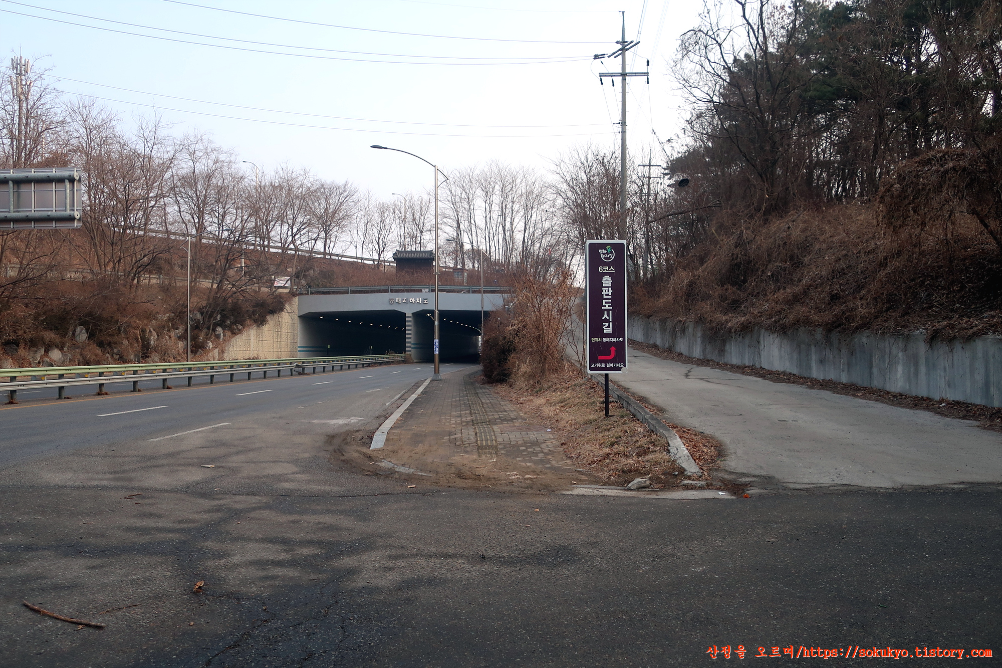 DMZ평화의길은 '동서대로'의 하부통로를 통과하여 심학산 둘레길에