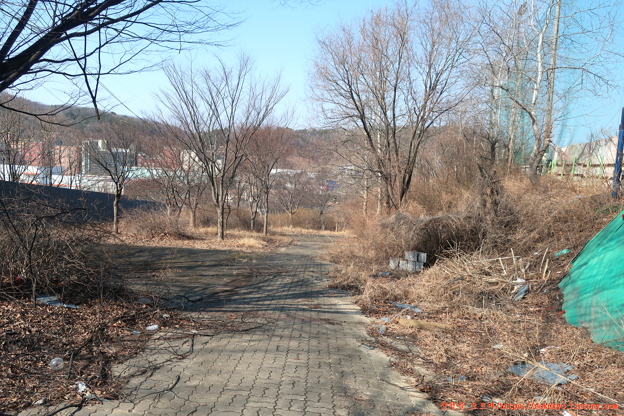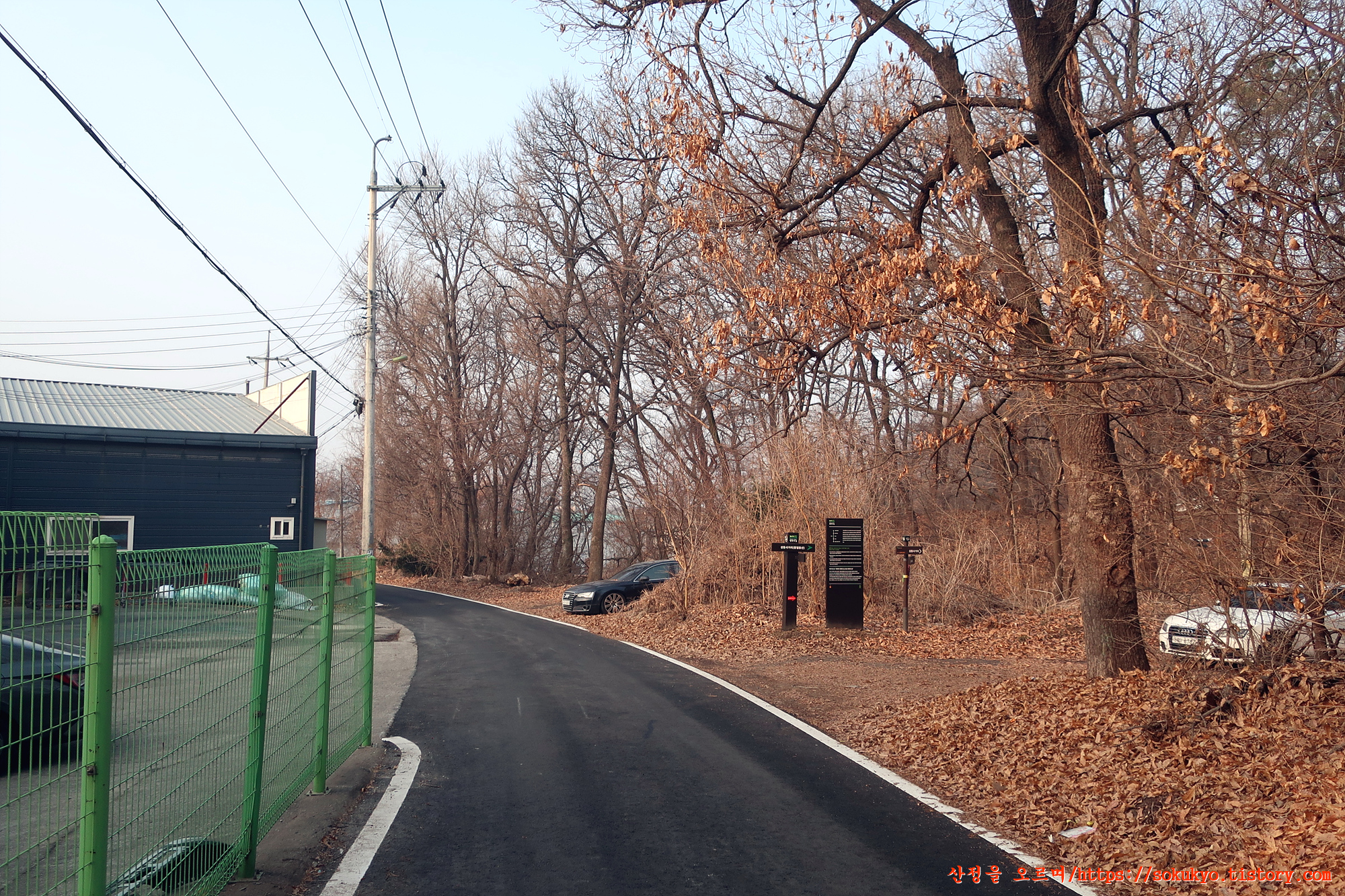 '홈마트식자재' 건물 뒤쪽의 도로를 따라 '가좌근린공원'으로 향합니다.
