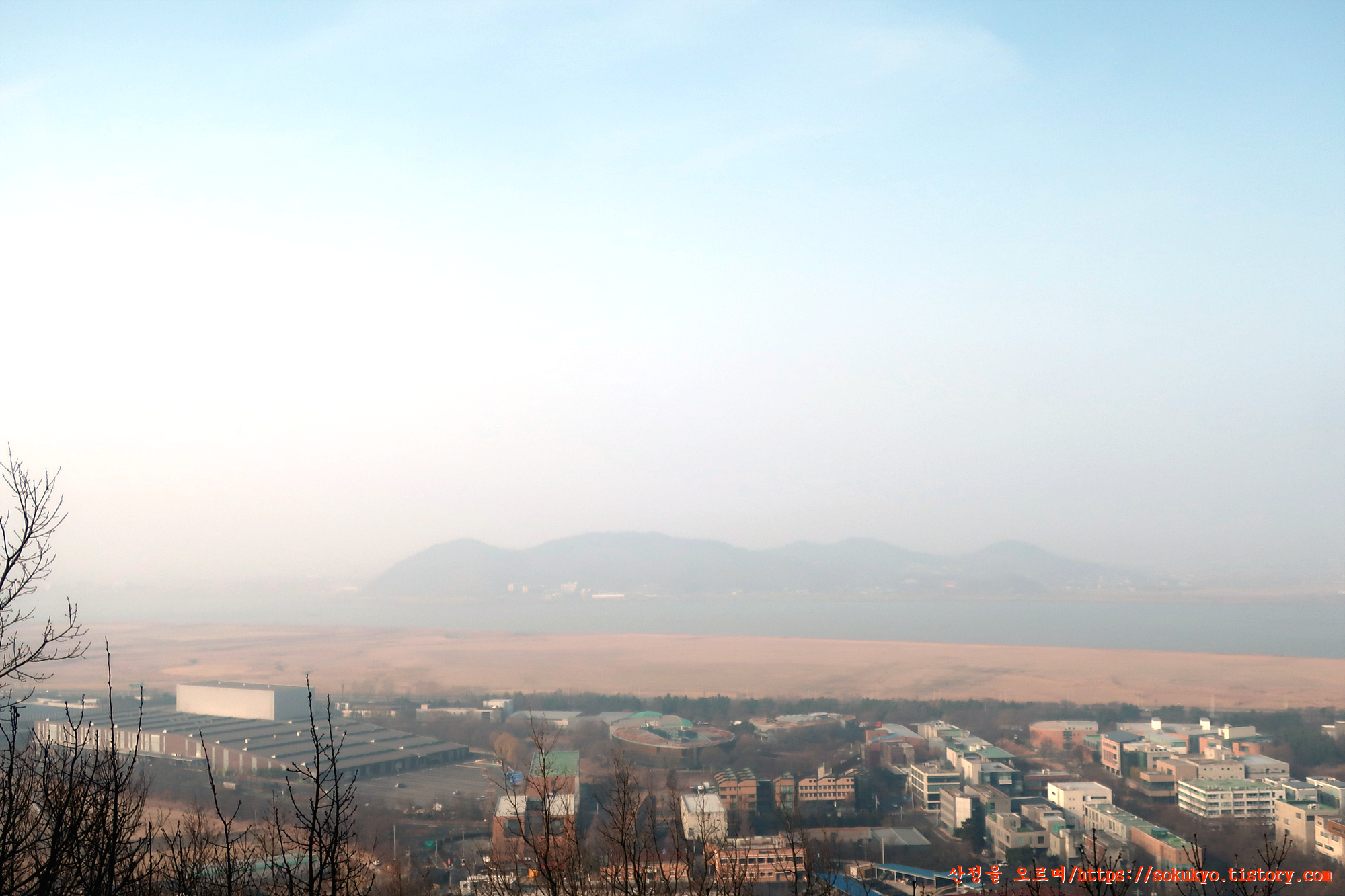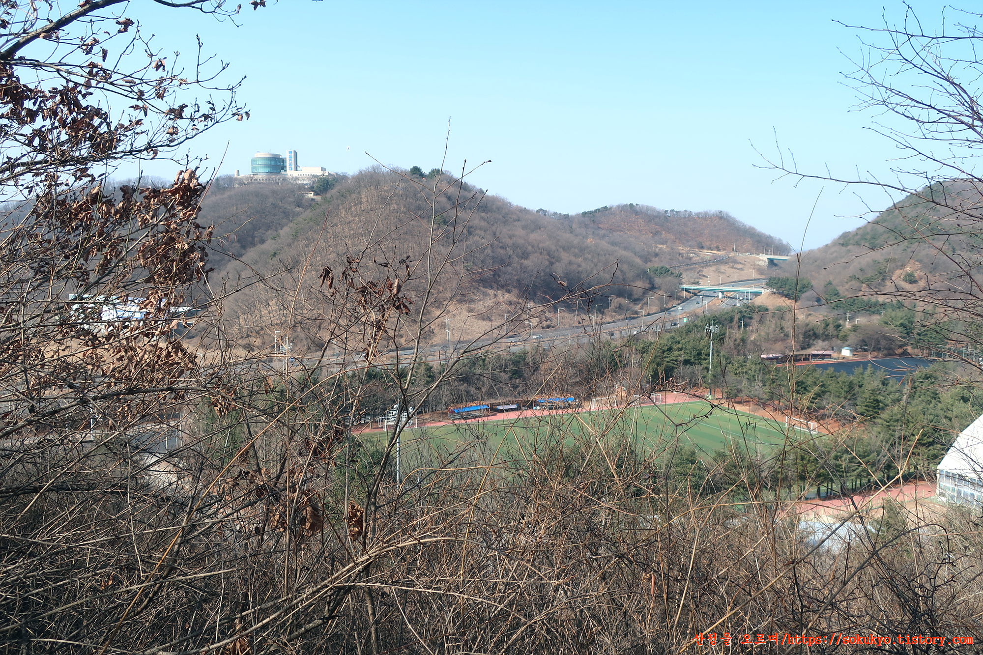 축구국가대표팀 트레이닝센타와 자유로 그뒤로 보이는 오두산 전망대 풍경