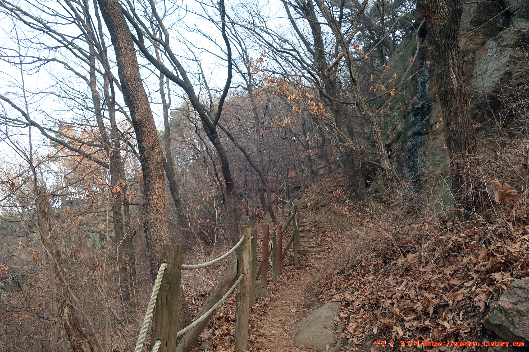 산책로를 따라 산길을 오르내리며 걷게 됩니다.