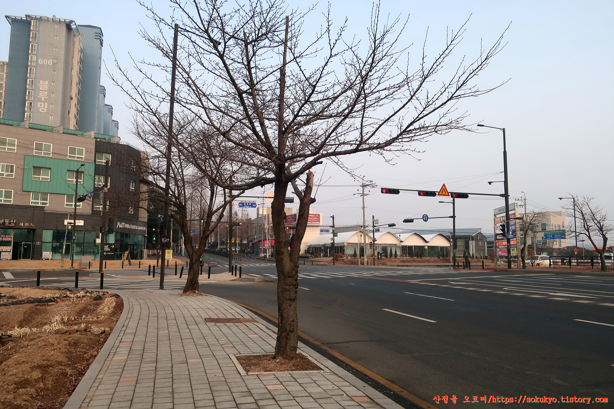가좌3로와 가좌로가 만나는 블루밍아파트 끝의 사거리에서