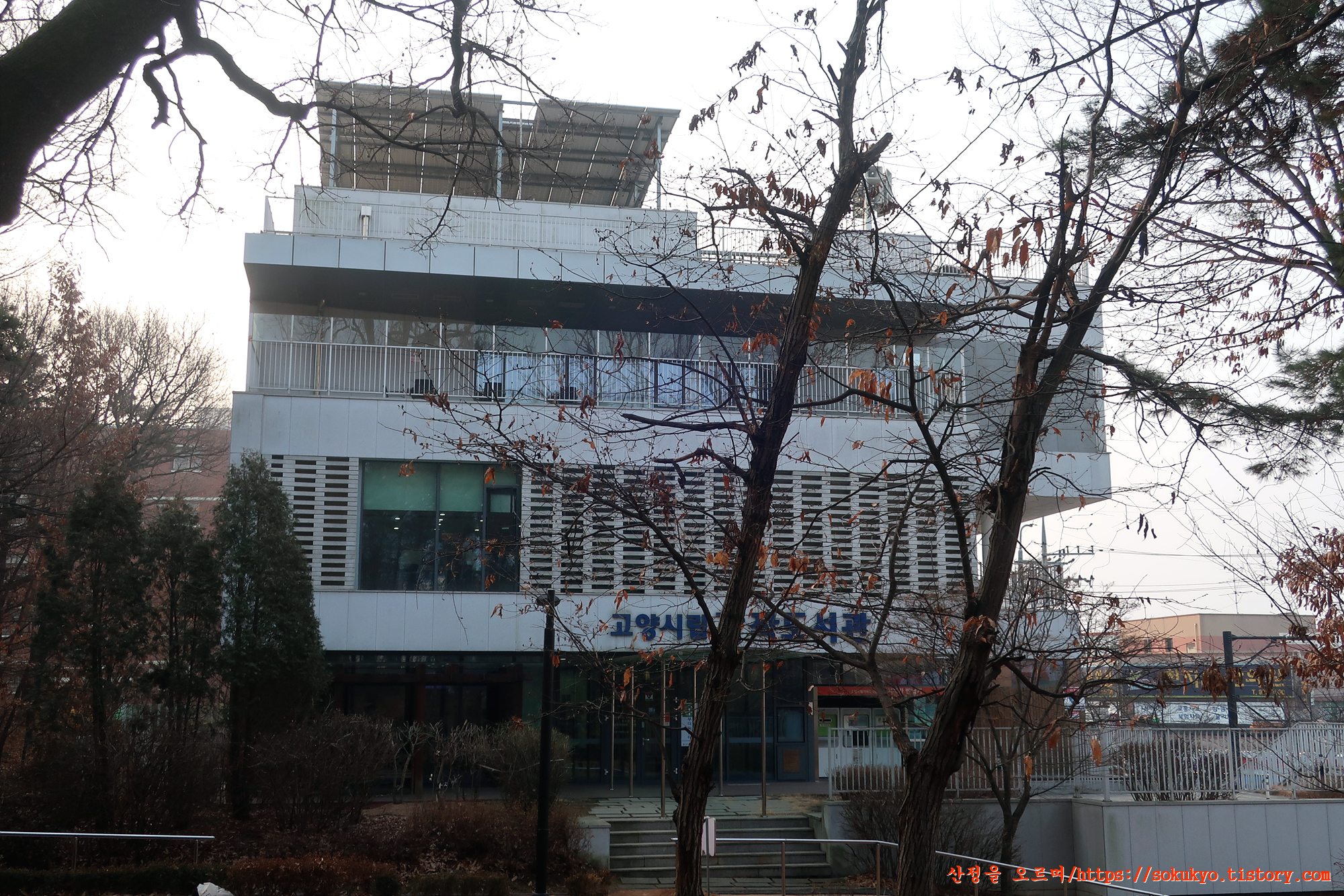 고양시립 가좌도서관앞을 지나 도로에 내려섭니다.