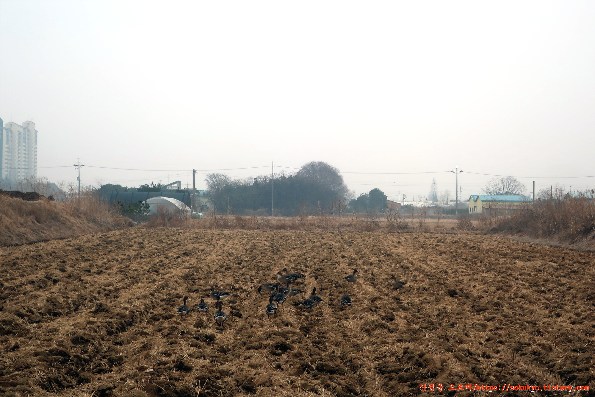 '송포로118번길'을 걷는 동안에 논에 내려 앉은 기러기떼를 만나기도 하네요